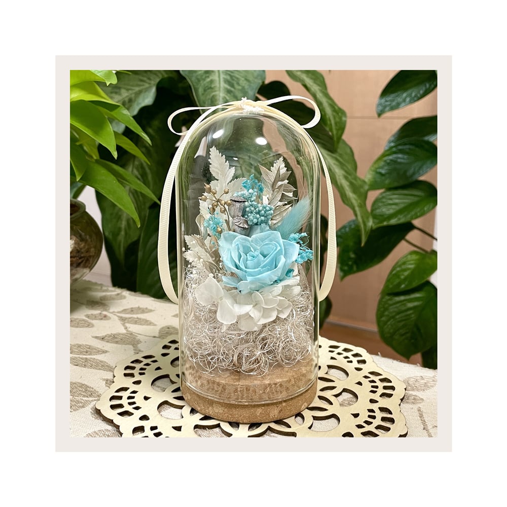 「自然体・自己表現」の水色ガラスドームフラワー