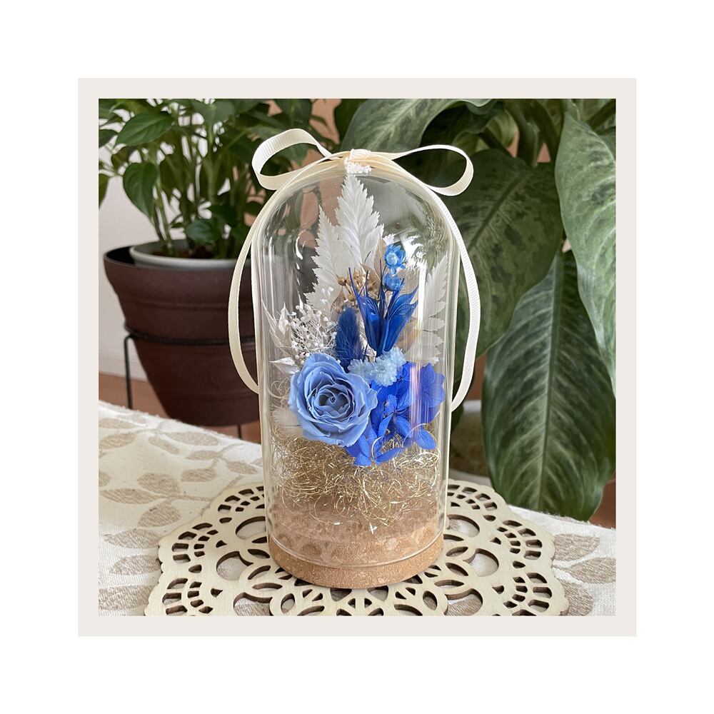 「誠実・鎮静」の青色ガラスドームフラワー