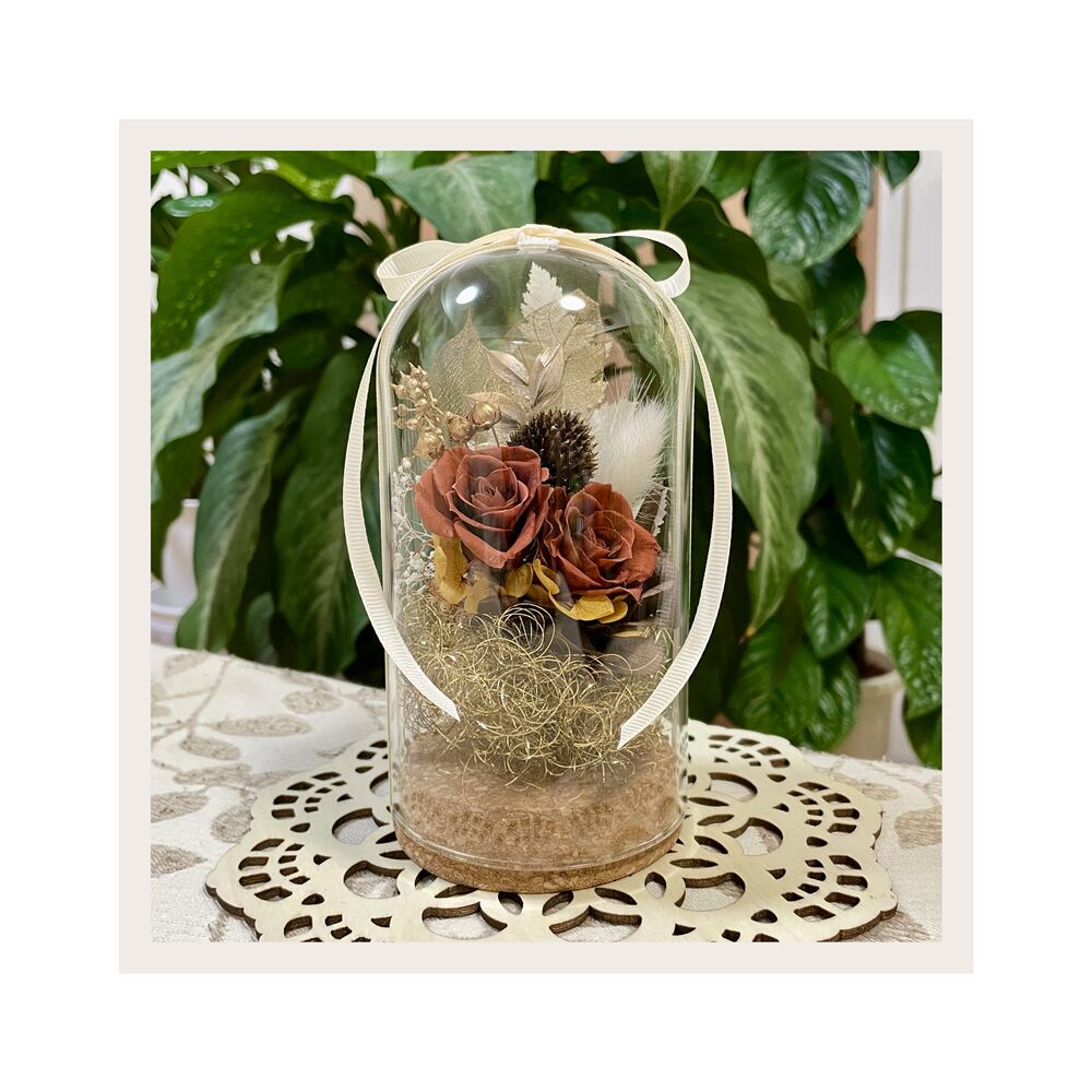 「安定・ぬくもり」の茶色ガラスドームフラワー